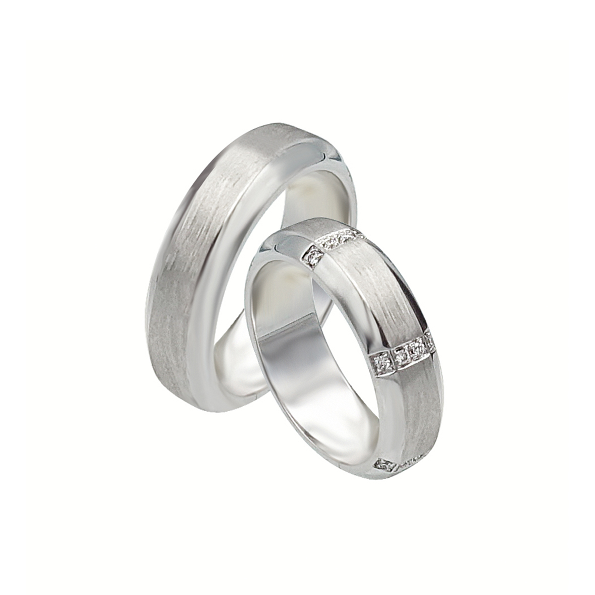 Mod. FD010 OR-B - Trauringe aus satiniertem 18-karätigem Weißgold, polierte Seiten und Diamanten.