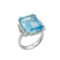18 kt white gold ring starring a magnificent 17 carat natural emerald-cut blue topaz, framed by an essential and elegant design that enhances its extraordinary brilliance.